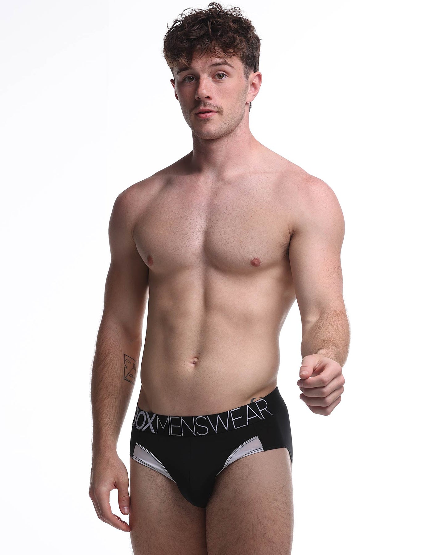 Flaunt your best assets in these eye-catching briefs, complete with a unique side crotch panels and a semi-transparent material that is irresistible to look away from. Complete with the iconic Box Menswear branding etched across the stretchy waistband, the Prince Fit Briefs - Black & White are here and about to become your new favourite underwear.